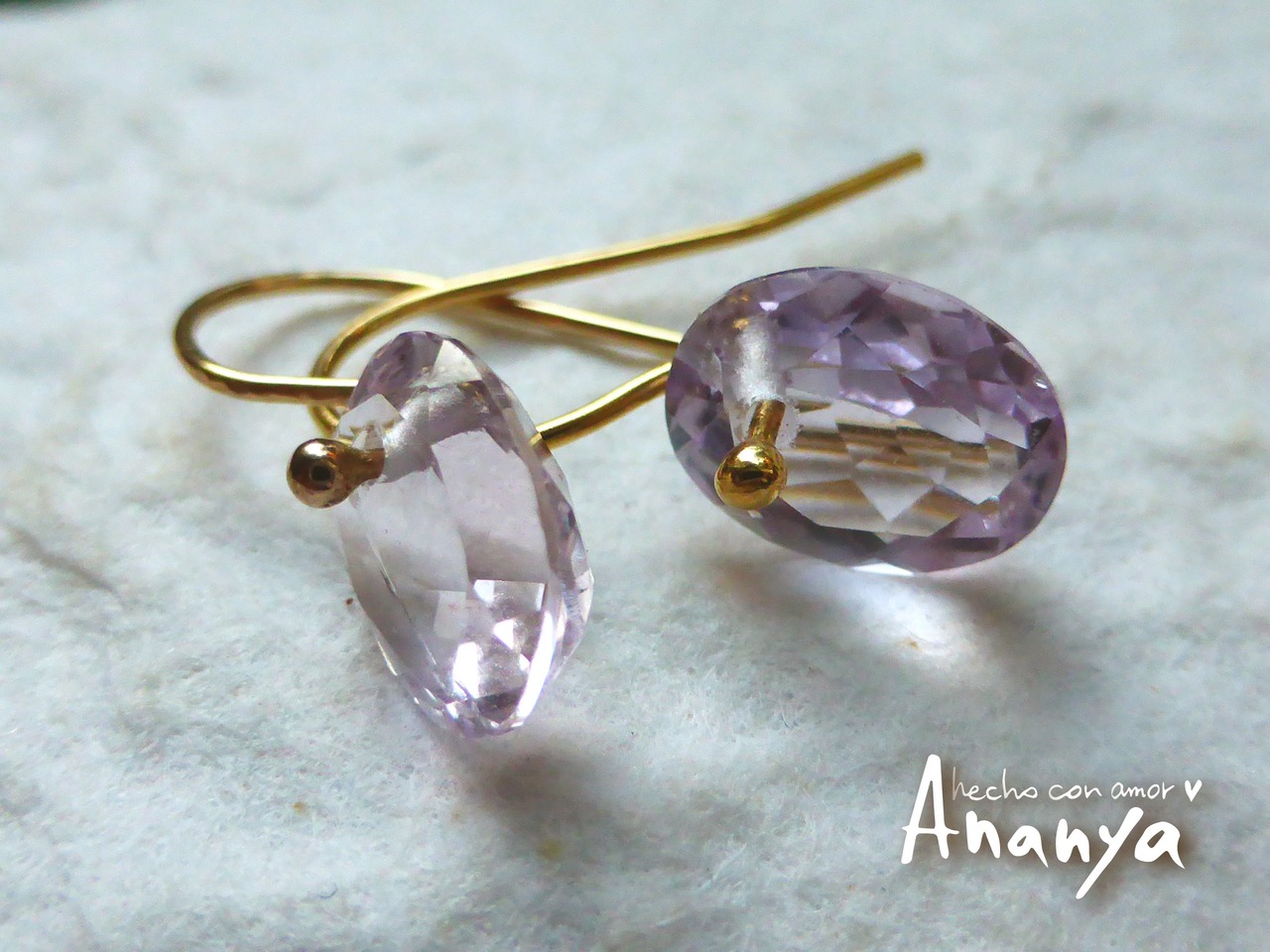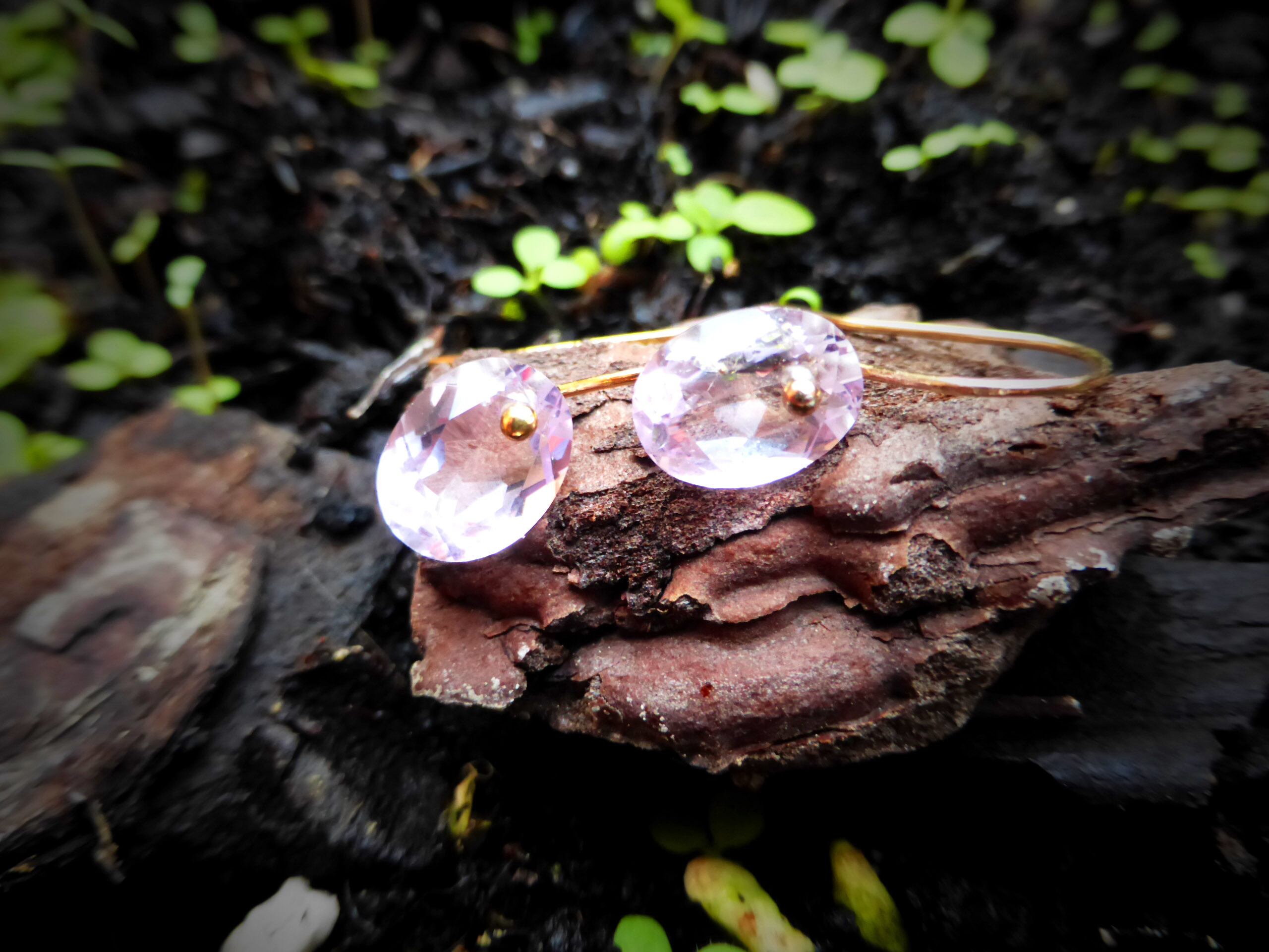 ほんのりとすみれ色なのがなんとも愛らしく凛としていて、カットが綺麗に入っていて上品に光を放っています。片方の石にはクラックが入っているのですが、それがまた違った角度で光が反射して魅力的です。