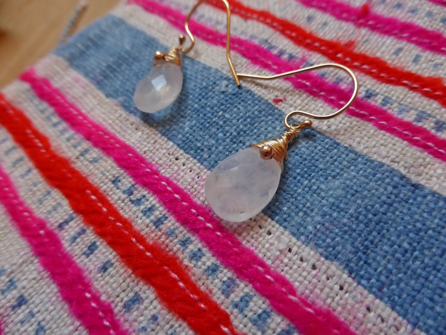 ムーンストーン、14kGビーズ、14kGFフック、14kGFワイヤー、シリコンキャッチ