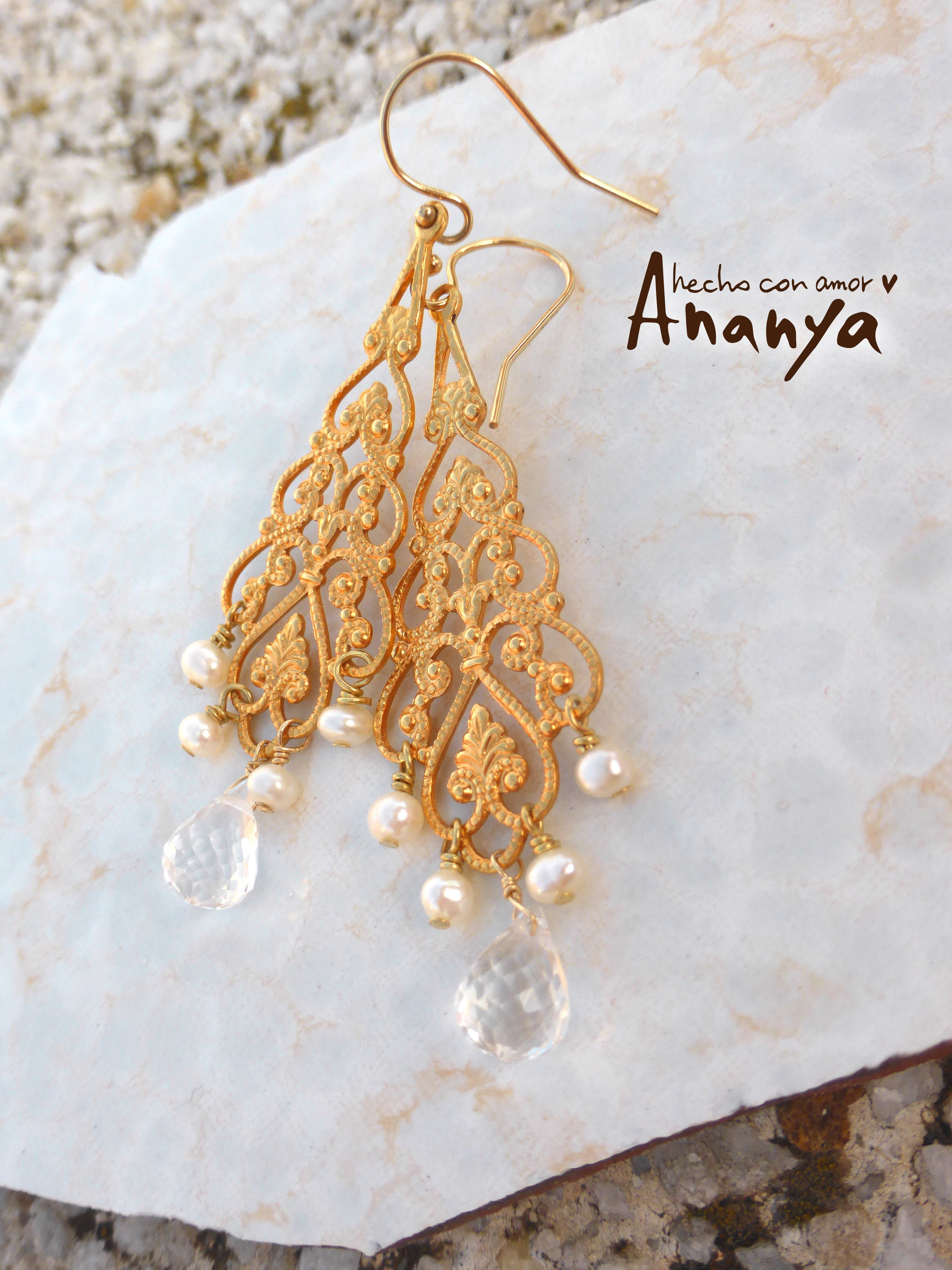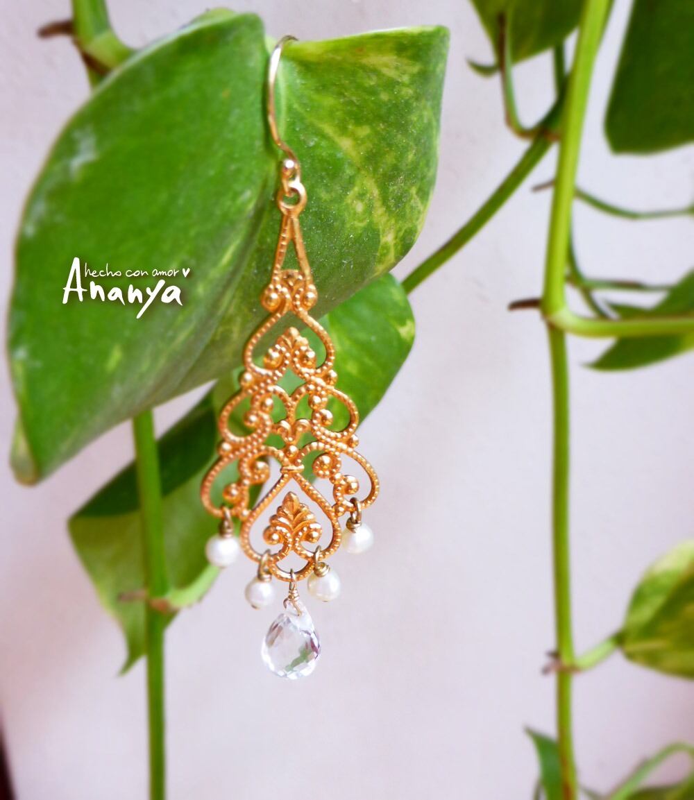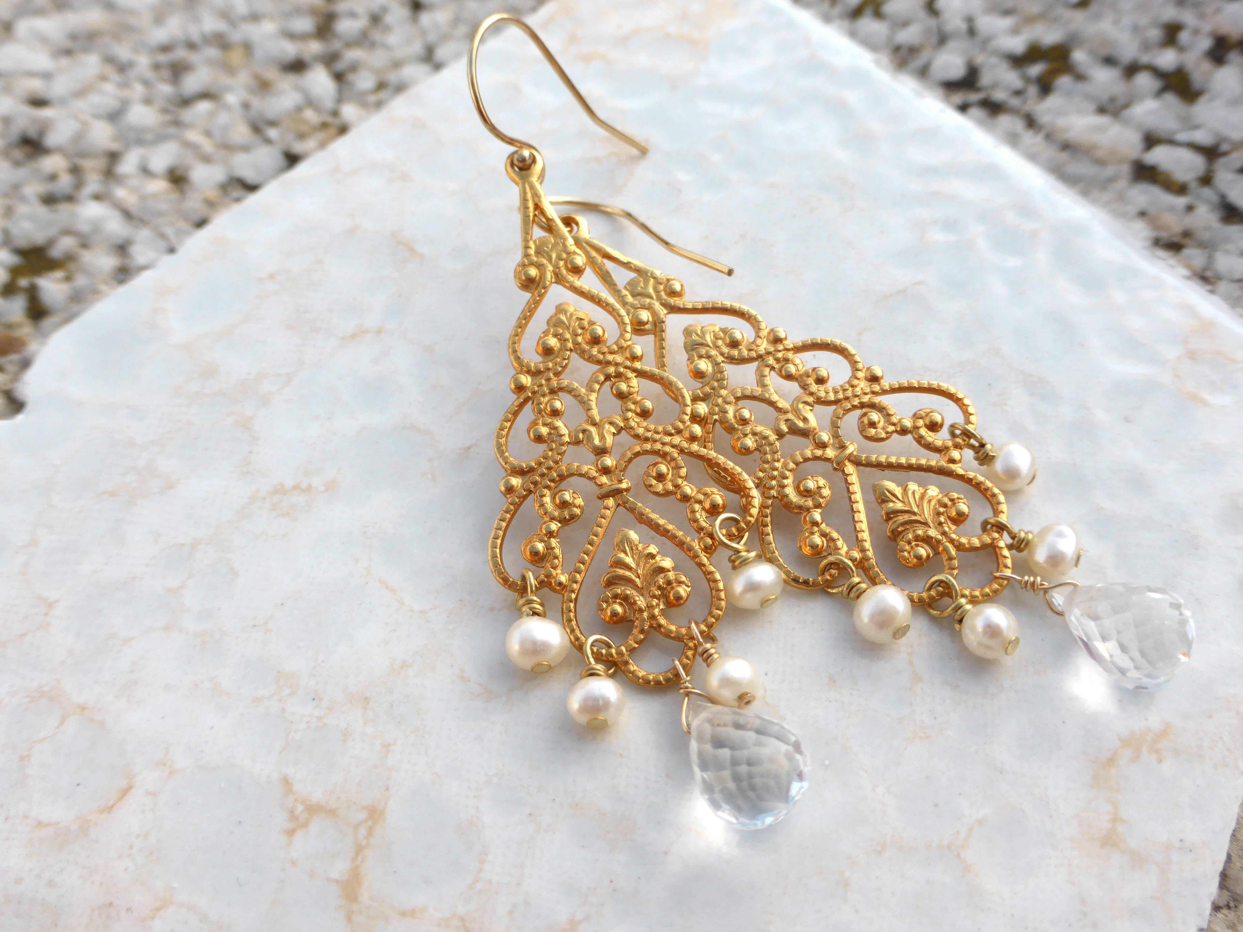 水晶、淡水パール、14kGFイヤーフック、14kGFワイヤー、ゴールドカラーメッキパーツ、シリコンキャッチ