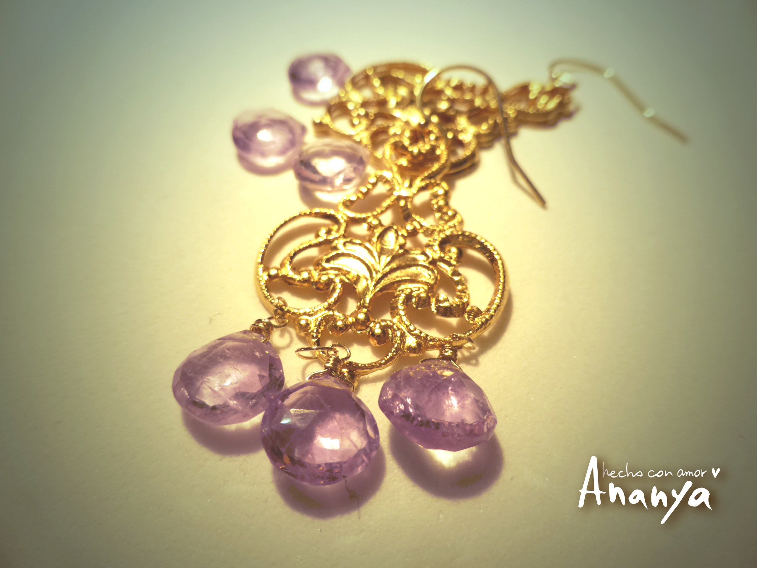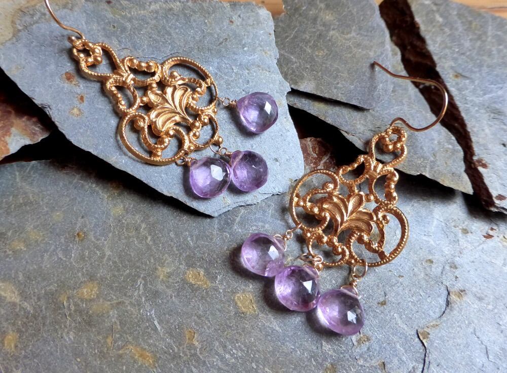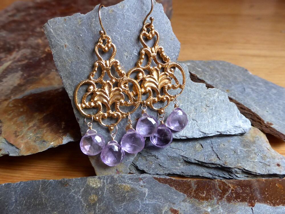 歴史のある手縫いの絨毯のような唐草模様で、アメジストの紫の色が妖艶さをプラスして輝いてます。ゴージャスかつアンティーク感もあり、重みが感じられます。