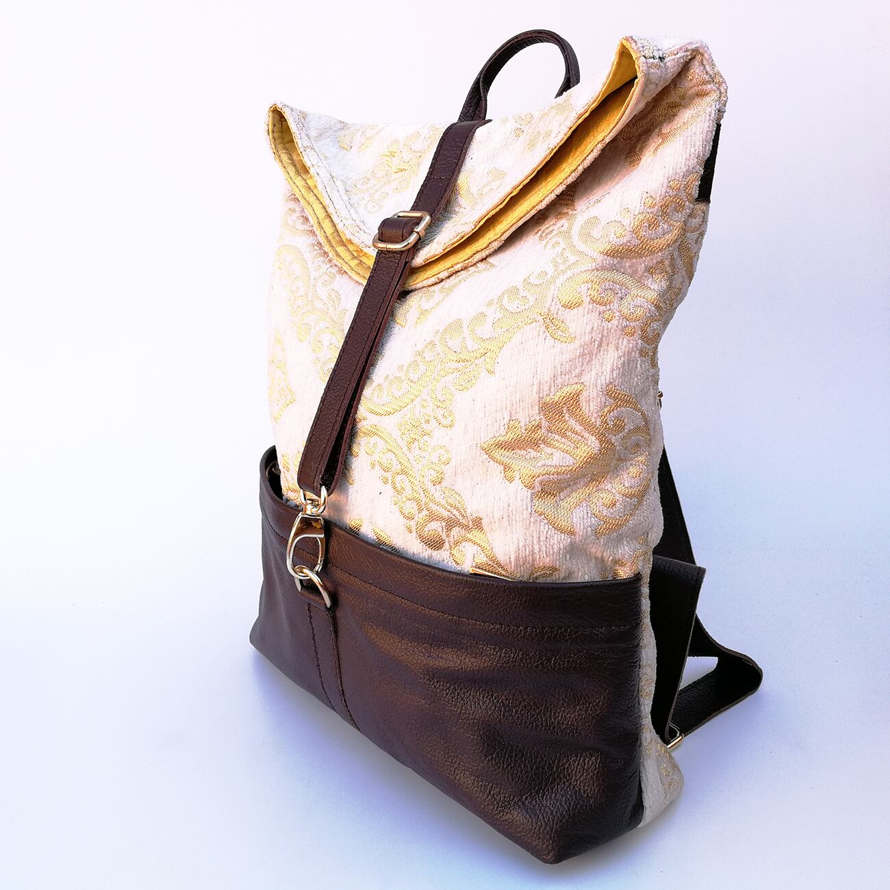 モロッコで仕入れた生地を使ってスタイリッシュなデザインのバックパック。