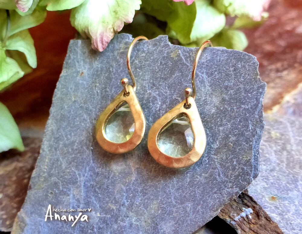 レモンクウォーツ、ハンマードブラス生地、14kGFイヤーフック、14kGFワイヤー