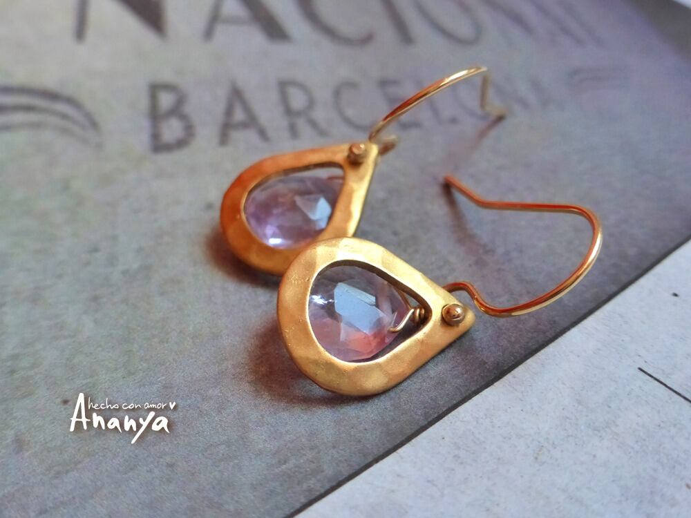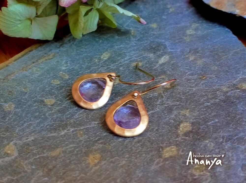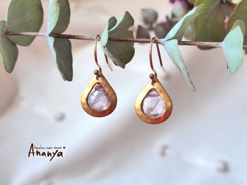 アメジスト、ハンマードブラス生地、14kGFイヤーフック、14kGFワイヤー