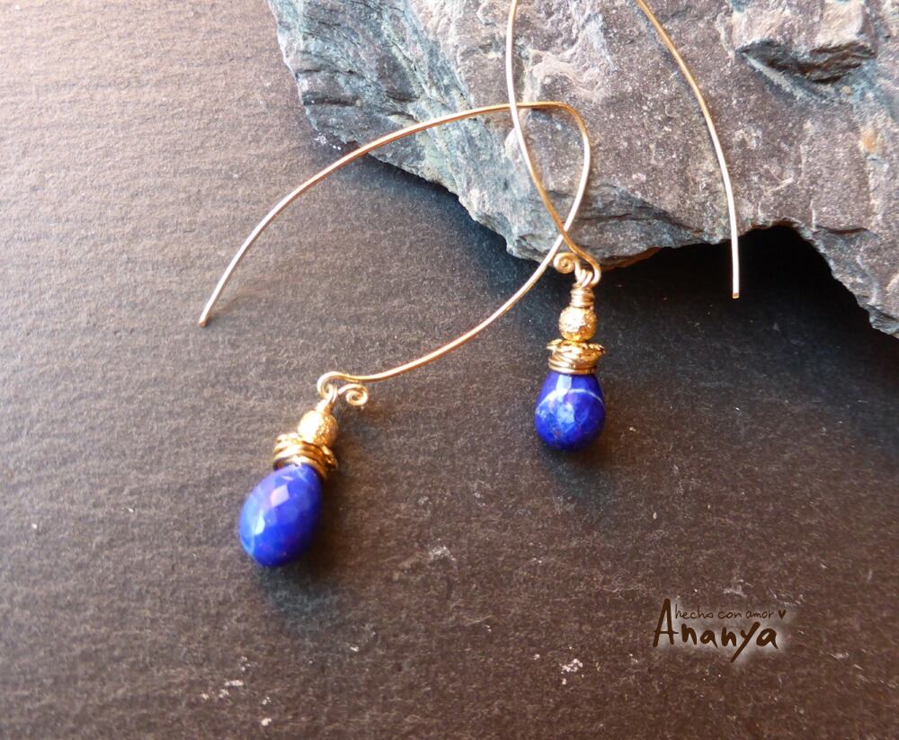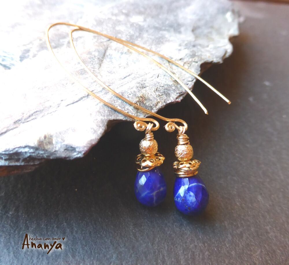ラピスラズリ、14kGFイヤーフック、14kGFワイヤー、14kGFビーズ