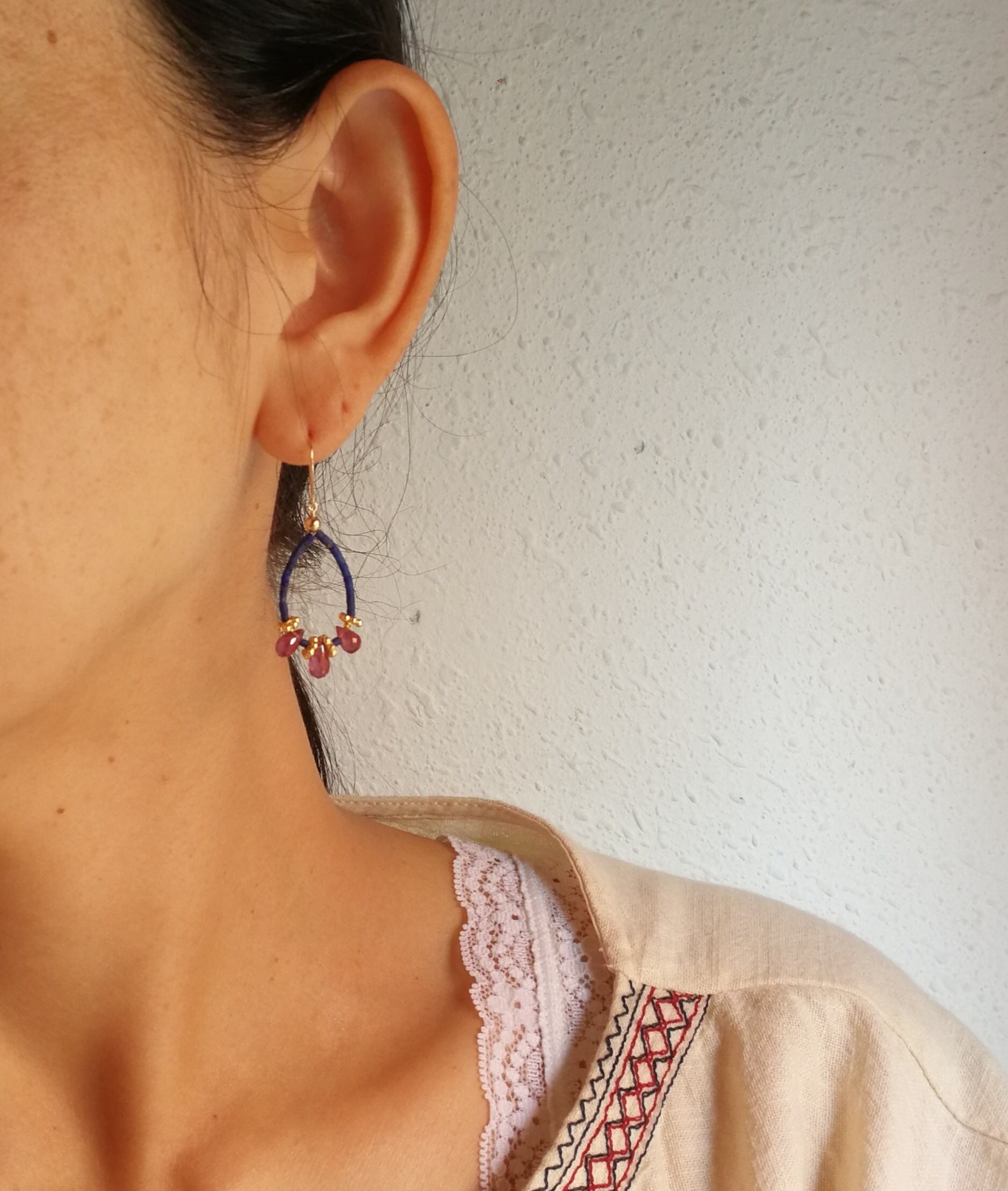 ラピスラズリ、ロードライトガーネット、カレンシルバー24金ゴールドプレート、14K ゴールドフィルドビーズ、14kGFフック