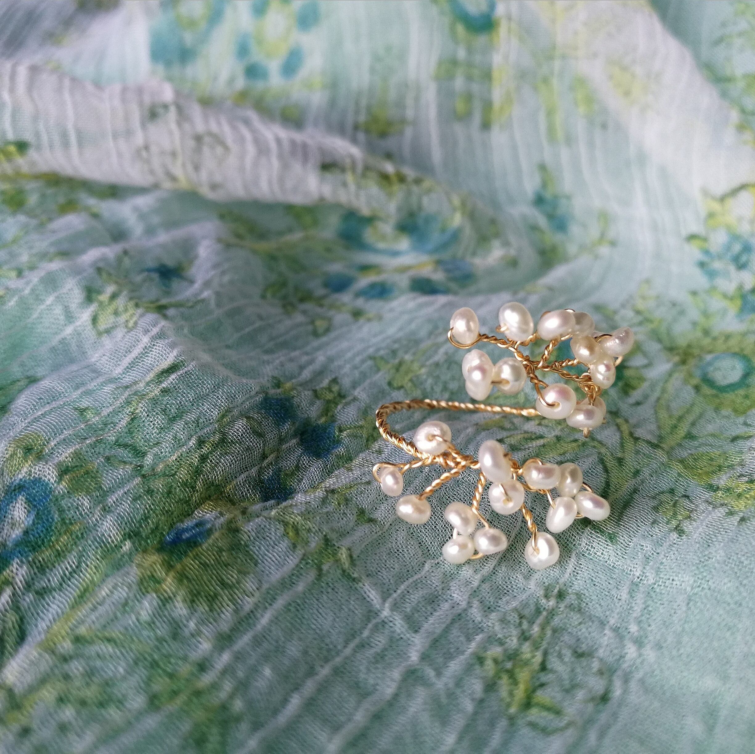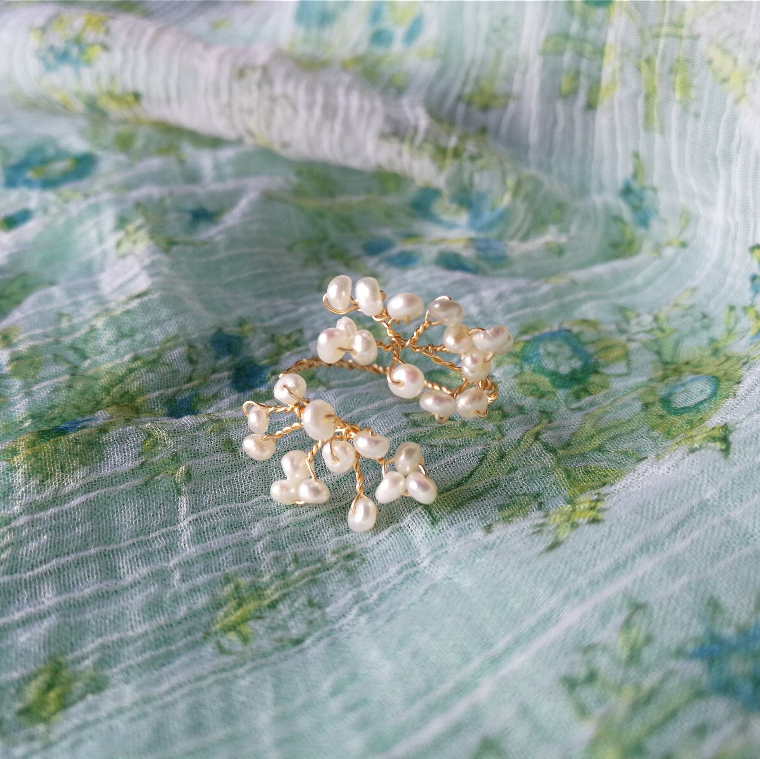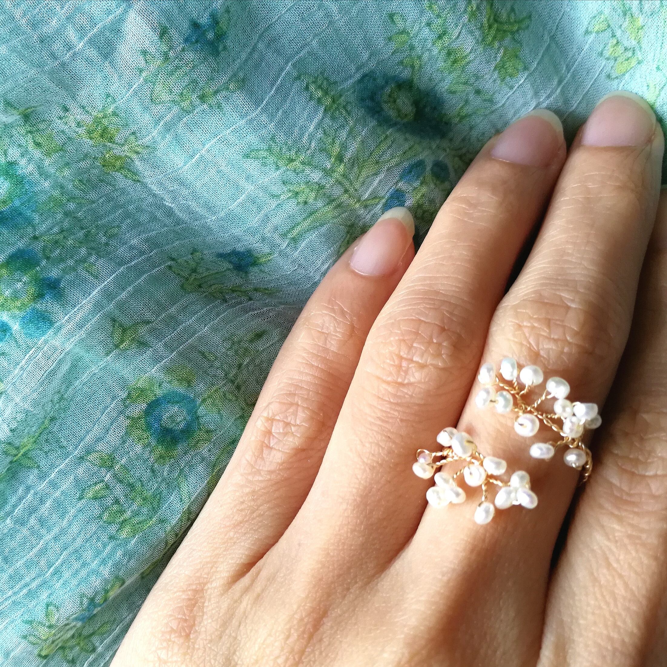 光のシャワーの指飾り☆ メヘンディリング 淡水パールツイスト サイズフリー (9~14)国内から発送☆