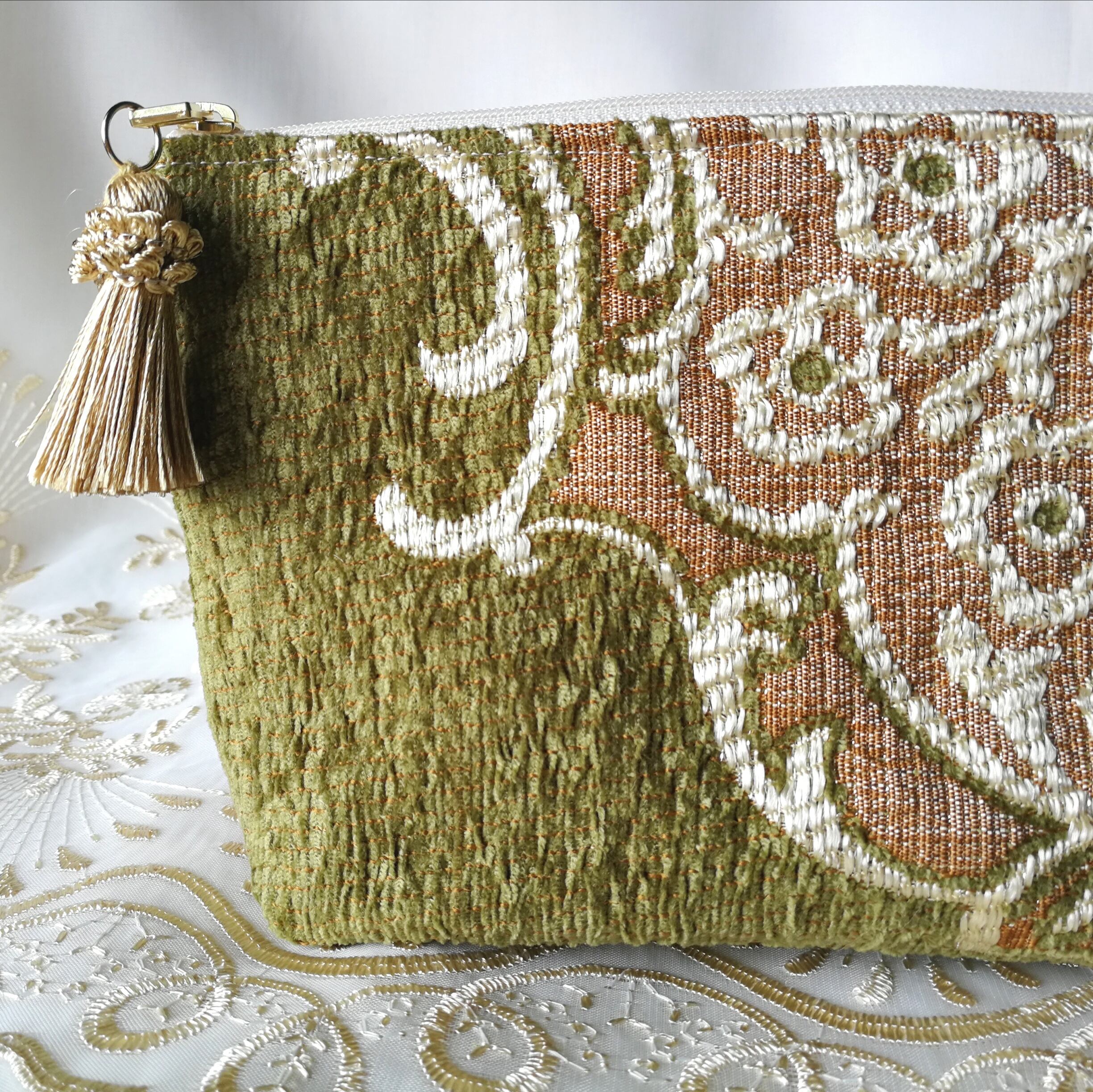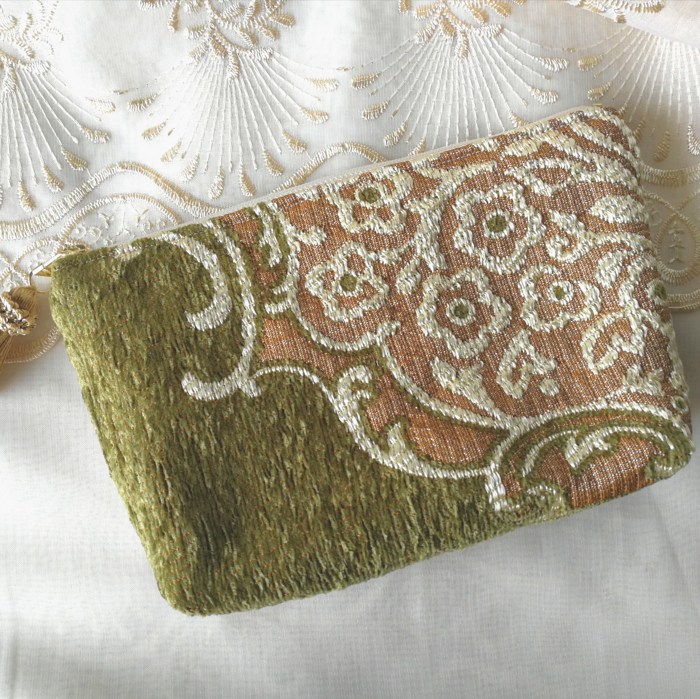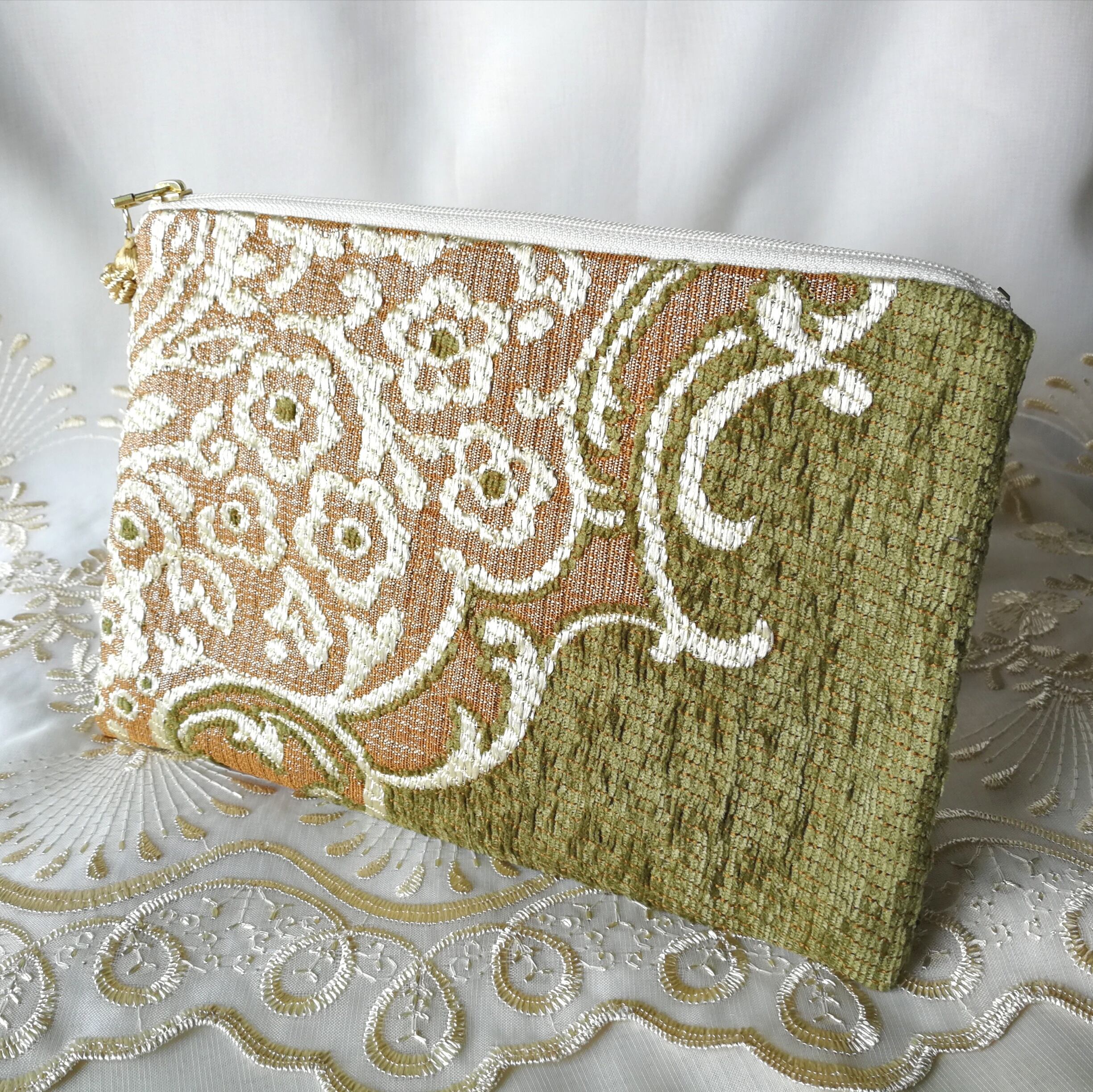 お客様専用ページ:アラベスク ポーチ モロッコ ファブリック ☆マチあり☆ カーキベージュ