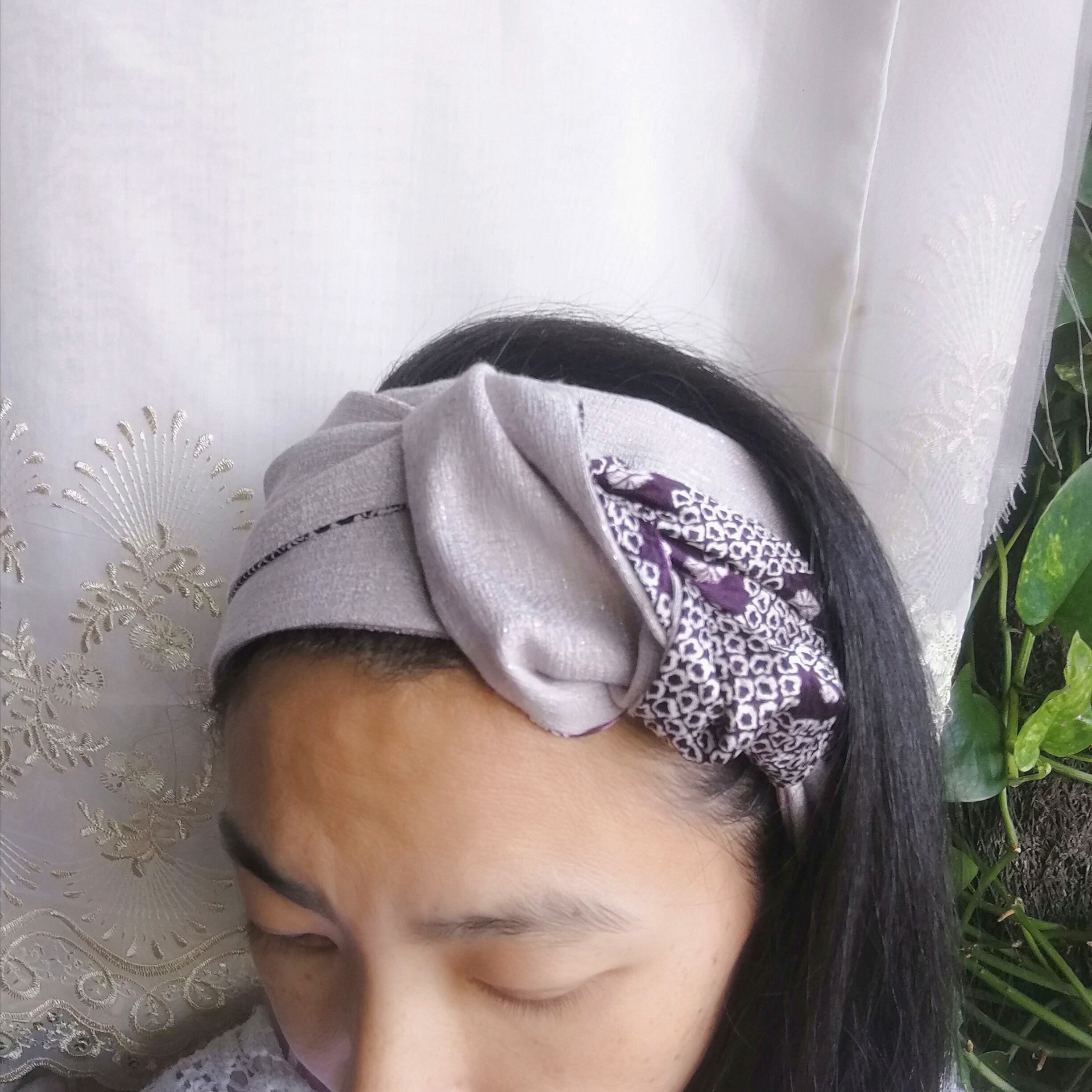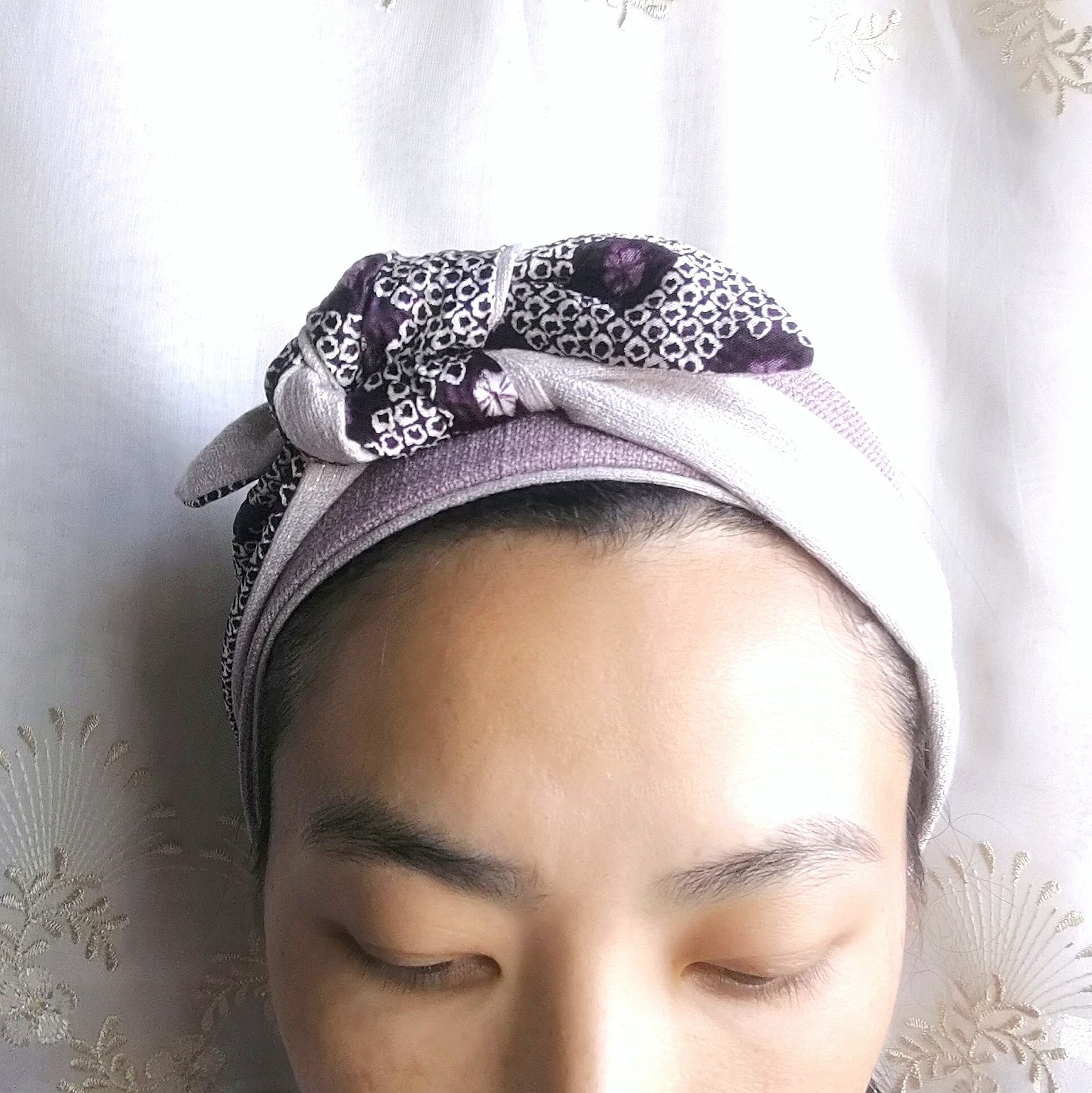 ヴィンテージきもの ヘアアクセサリー 紫の水彩画 6way☆まきまきターバン