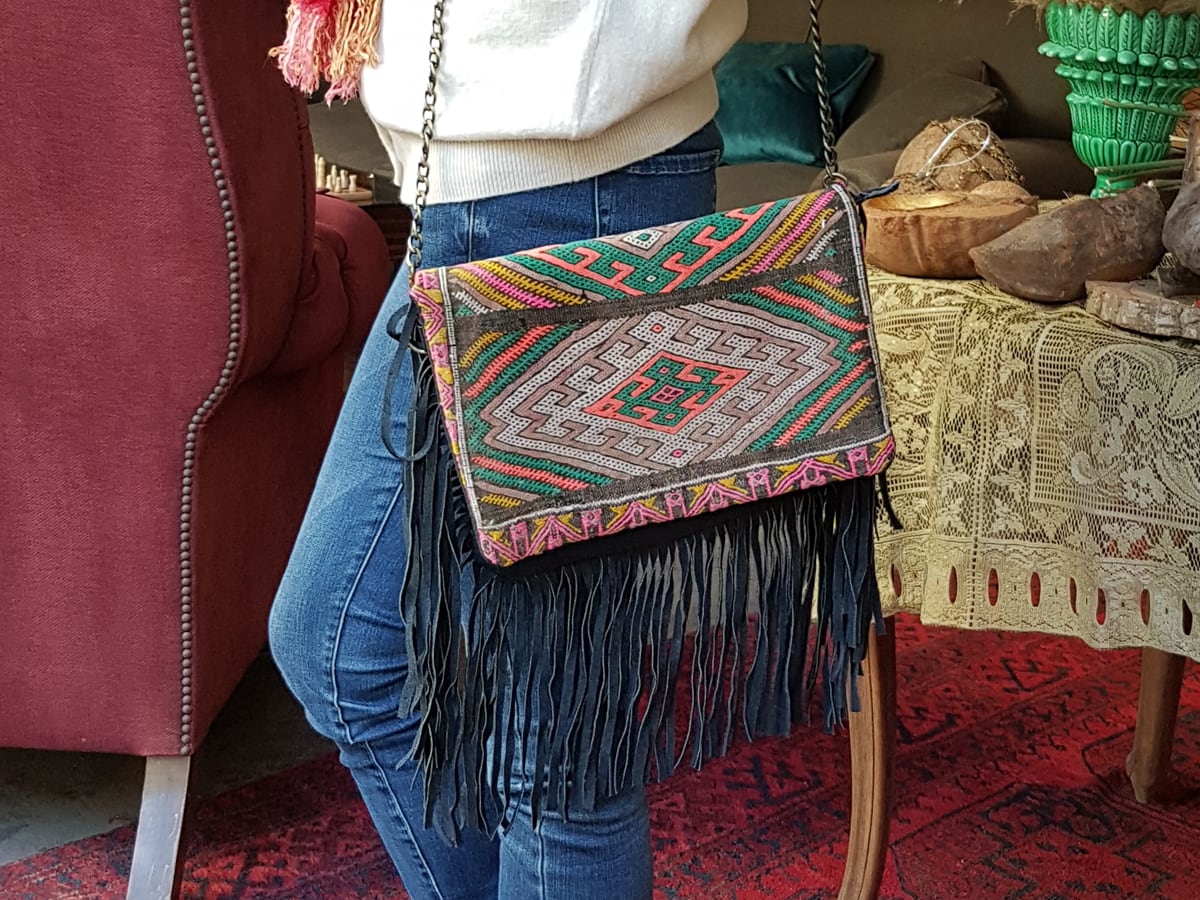 ☆ヴィンテージ キリム フリンジバッグ*fine dark