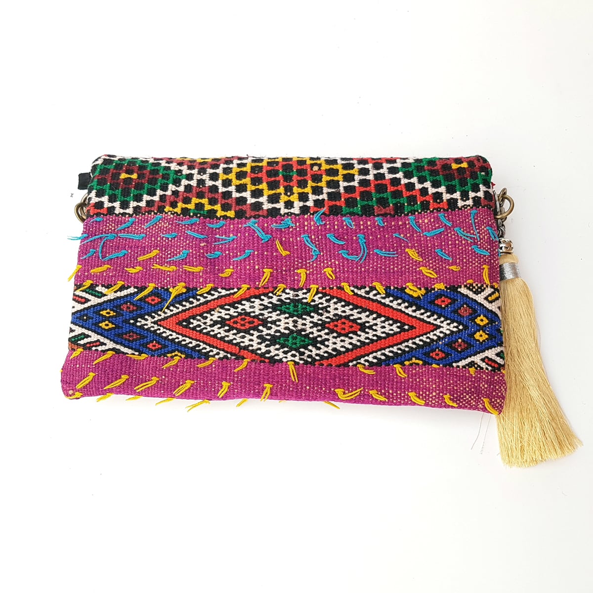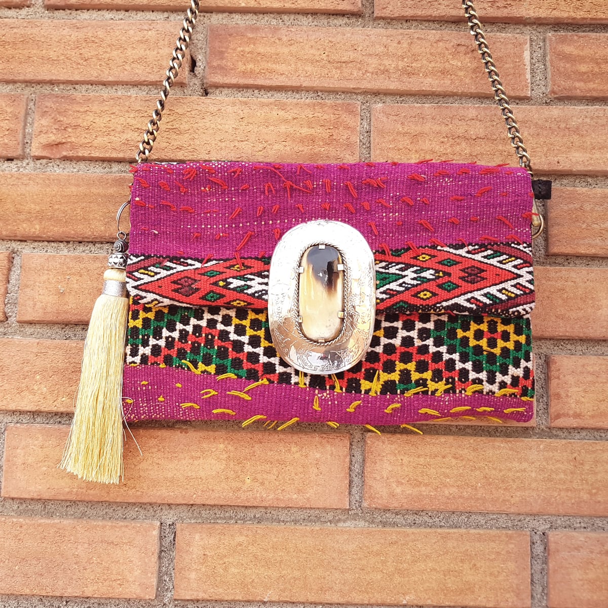 ヴィンテージ キリム クラッチバッグ*raspberry metal bone